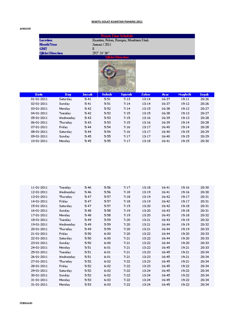 Waktu Solat Kuantan Pahang 2011 Pdf